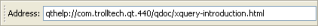 The address toolbar provides a fast way to enter a specific URL for a documentation file. By default, the address toolbar is not shown, so it has to be activated via View|Toolbars|Address Toolbar .