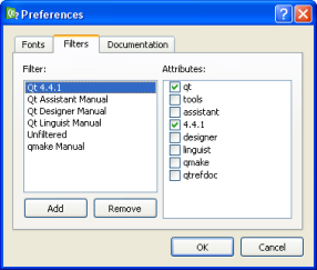 Qt Assistant allows you to install any kind of documentation as long as it is organized in Qt compressed help files (*.qch). For example, it is possible to install the Qt reference documentation for Qt 4.4.0 and Qt 4.4.1 at the same time. In many respects, this is very convenient since only one version of Qt Assistant is needed. However, at the same time it becomes more complicated when performing tasks like searching the index because nearly every keyword is defined in Qt 4.4.0 as well as in Qt 4.4.1. This means that Qt Assistant will always ask the user to choose which one should be displayed.