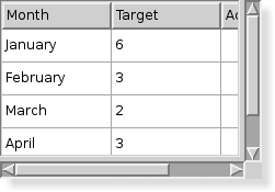 The QScrollBar widget provides a vertical or horizontal scroll bar. Here, we show a scroll bar with horizontal orientation. |