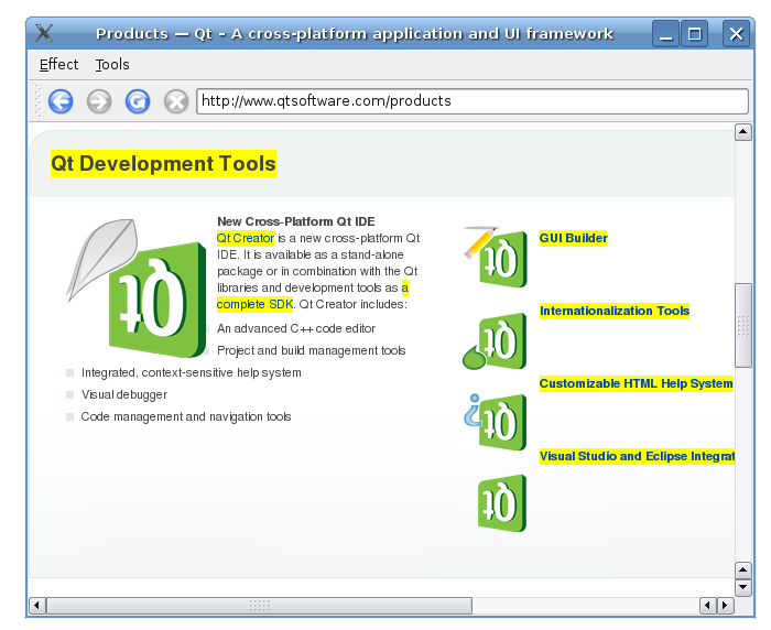 The application makes use of QWebFrame::evaluateJavaScript to evaluate the jQuery JavaScript code. A QMainWindow 采用 QWebView as central widget builds up the browser itself.